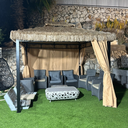 גזיבו מפואר לגינה הכולל וילונות