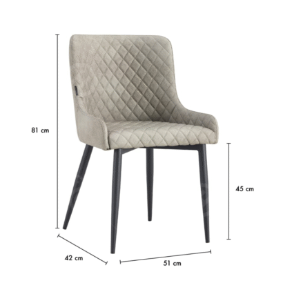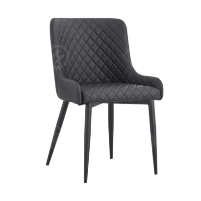 כיסא אוכל אלגנטי ומרופד בעיצוב יוקרתי, תפרים דמוי יהלום למראה מודרני ומוקפד. רגלי מתכת חזקות בגימור תואם, משלימות מראה נקי ומרשים. דמוי עור, קל לניקוי – מושלם למסעדות, בתי קפה, חדרי ישיבות או פינות אוכל מעוצבות.
