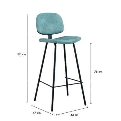 כיסא בר גבוה בעיצוב מודרני, מושב וגב מרופדים בעיצוב מינימליסטי המתאים לסגנונות עיצוב שונים