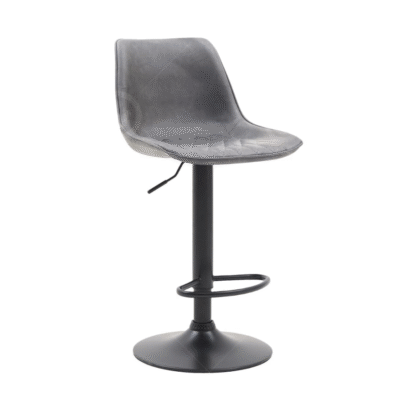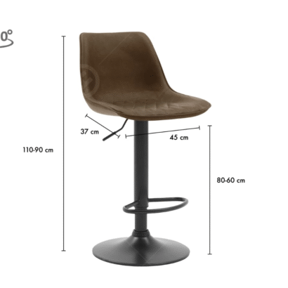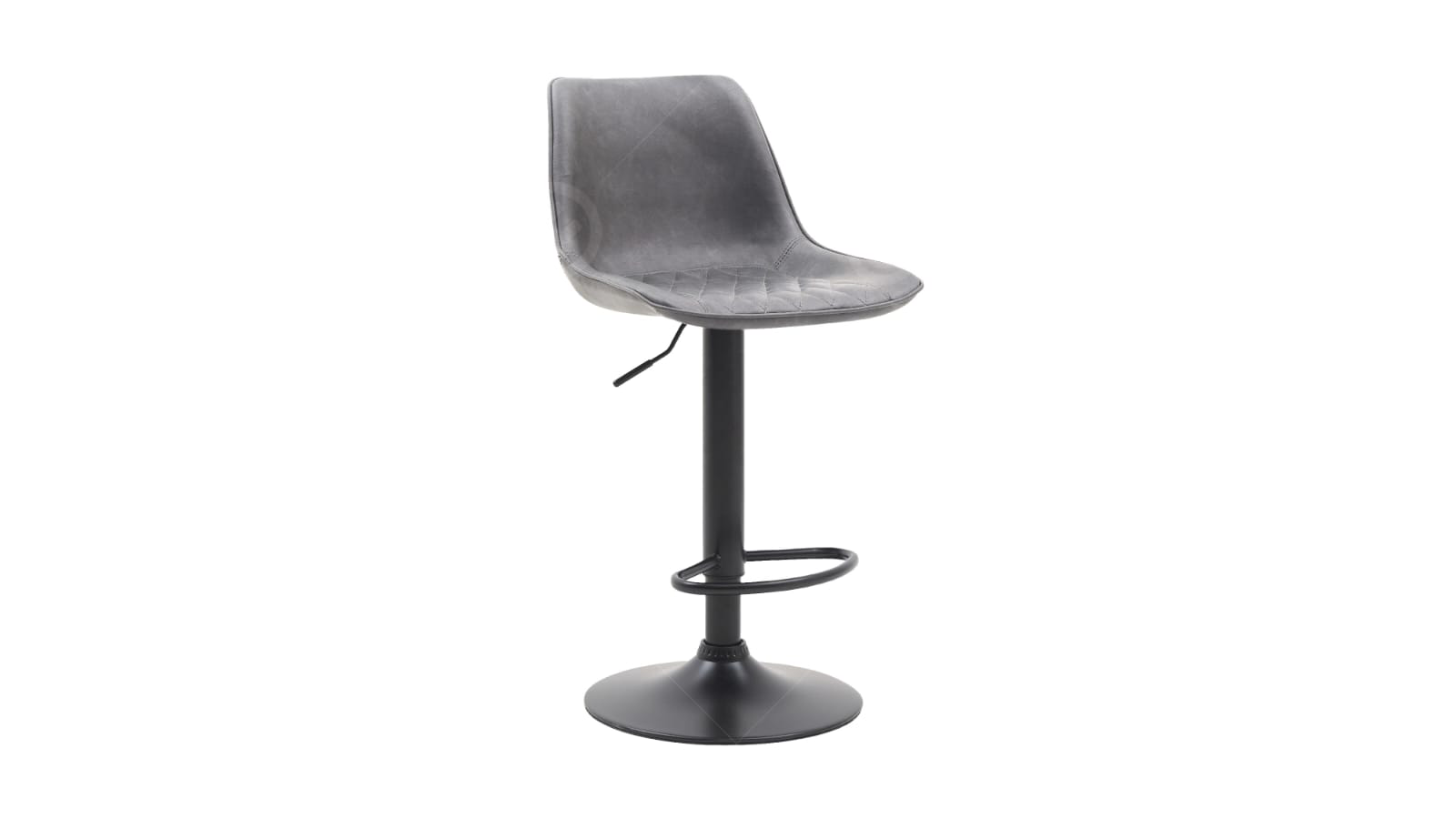 כיסא בר מודרני מתכוונן בעל מושב מרופד דמוי עור במס׳ גוונים: אפור, חום ושחור.