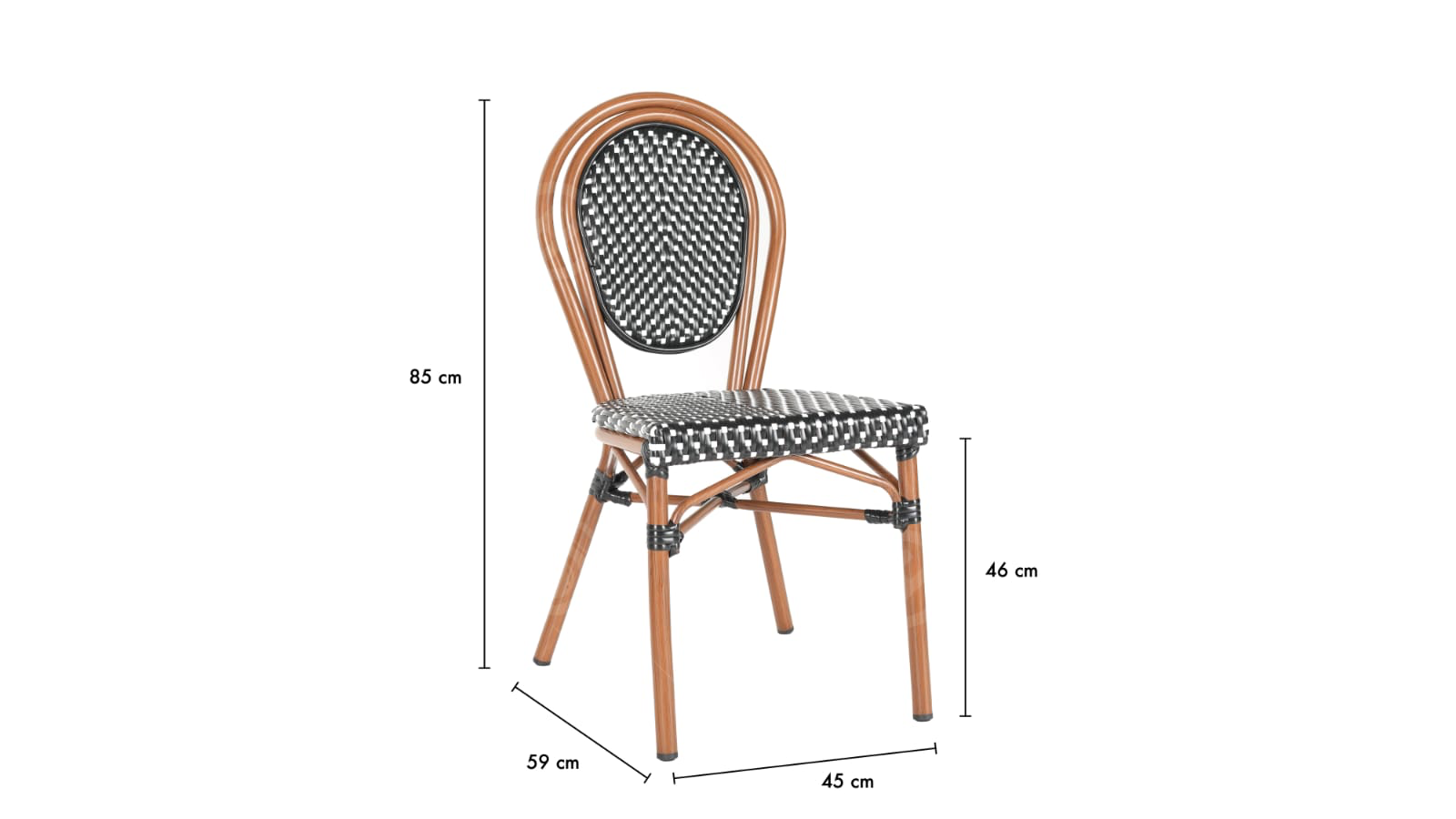 כיסא אלומיניום בעיצוב רטרו נקודות, ללא משענת לידיים. מתאים למסעדות ובתי קפה, קל לניקוי ועמיד בפנים ובחוץ כאחד