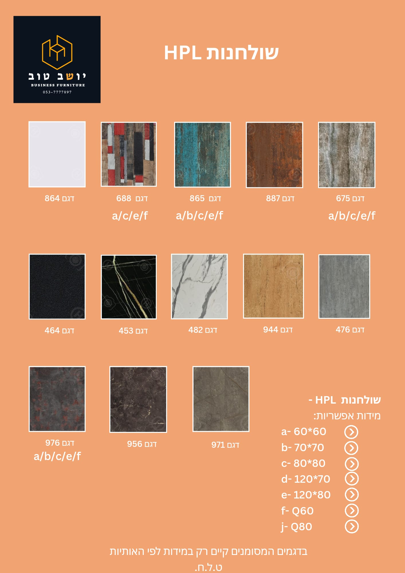 ניתן לייצר ו/או להזמין רגליים תואמות ליצירת השולחן המושלם